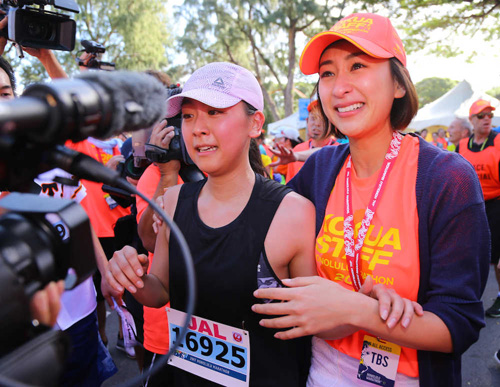 完走後、真央ちゃん号泣。応援に駆け付けていたお姉さん舞ちゃんも号泣。そりゃそうですよ。