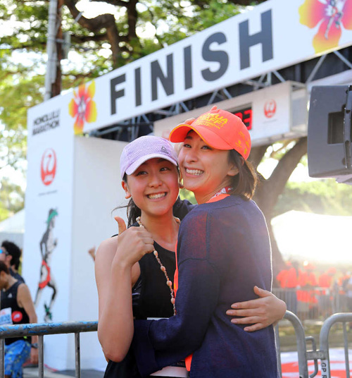 今大会の舞台となったハワイは、真央さんにとって思い出の地だ。10年バンクーバー五輪で銀メダルを獲得した後、今は亡き最愛の母・匡子さんと姉・舞さんと家族旅行で訪れた。レース前日の9日は、匡子さんの命日でもあった。「7年ぶり、母と舞と3人で旅行に来て以来のハワイで、すごく不思議な思い。きょう舞も来てくれて、きっと母も一緒に見ていたと思うので、そう思うと完走できて良かった」。応援に駆けつけた舞さんと抱き合うと、涙が浮かんだ。