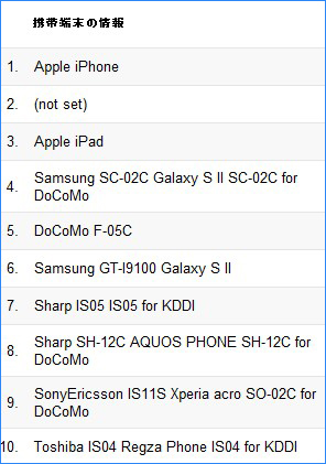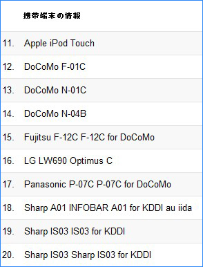 ではモバイル(対象はhtml5非対応の検索サイト)でのアクセス20位まで。