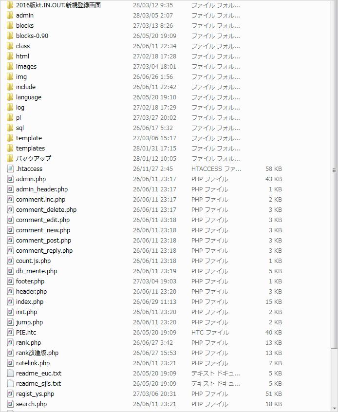 Xoops版yomiのフォルダの中身です。※画像②