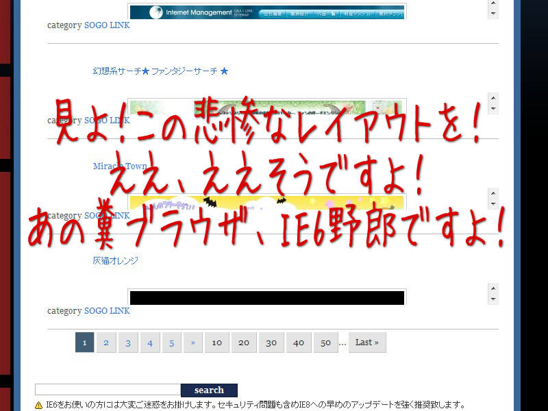 私の検索サイトね、IE6ユーザー、まだ15%位いてはるねん。