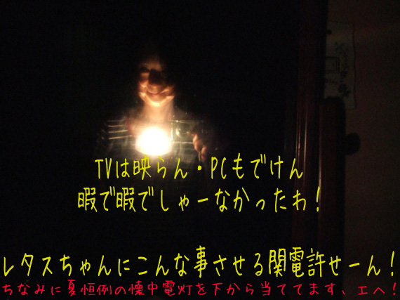 停電といえば懐かしい誰かさん家に落ちた時あったなあ。